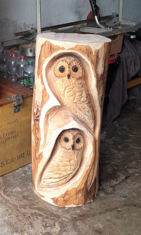 Die Kettensägenkunst bildet die Grundlage für verschiedene handgefertigte Holzarbeiten.