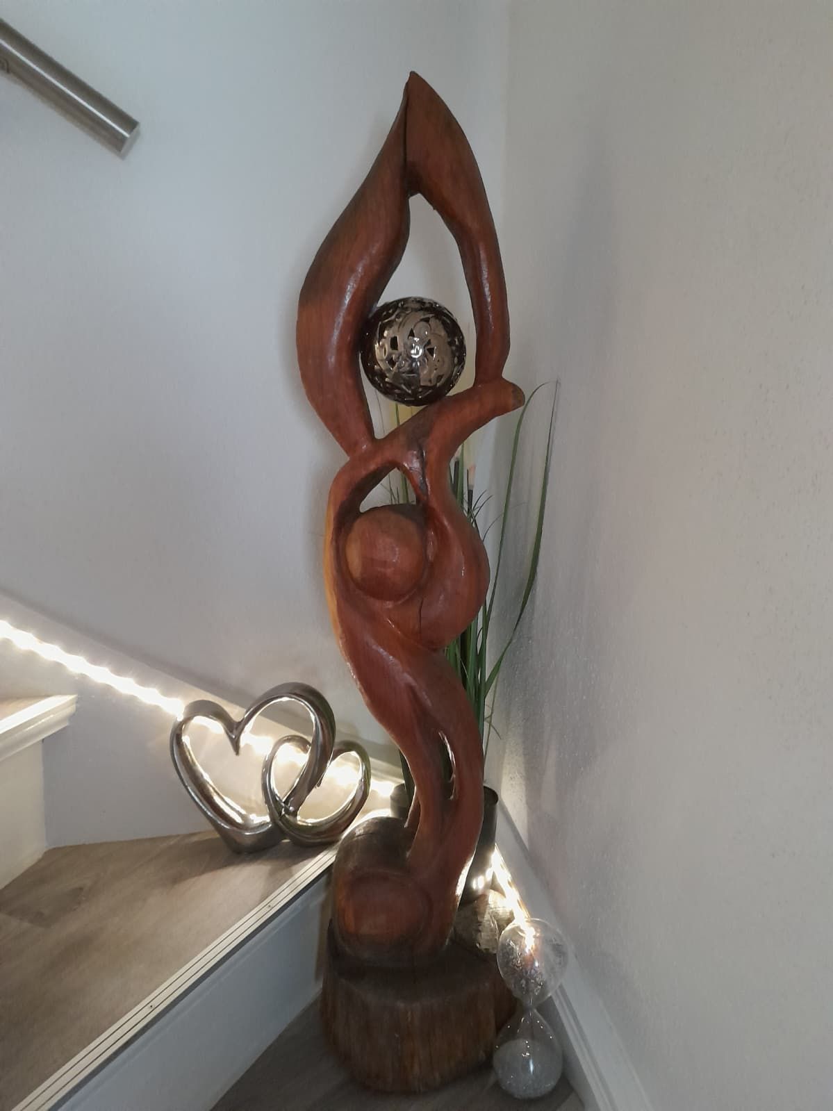 Hier sieht man eine behandelte Skulptur. Durch das Ölen kommt erst die schöne Farbe und die Maserung zur Geltung. Die