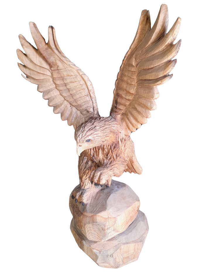 Die Fertigungszeit variiert je nach Größe und Komplexität der Skulptur. Eine mittelgroße Figur, wie ein Adler von ca. 80 cm, kann innerhalb von 2-5 Tagen fertiggestellt werden. Für größere oder besonders detaillierte Kunstwerke kann es etwas länger dauern.