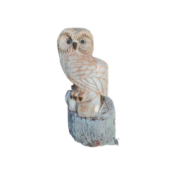 Sitzende Eule auf Baumstumpf in 4 Ansichten. Ideal für Einsteiger – eine der beliebtesten Formen in der Kettensägenkunst.
